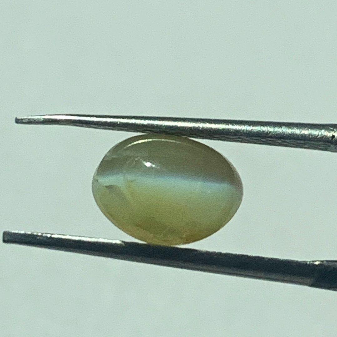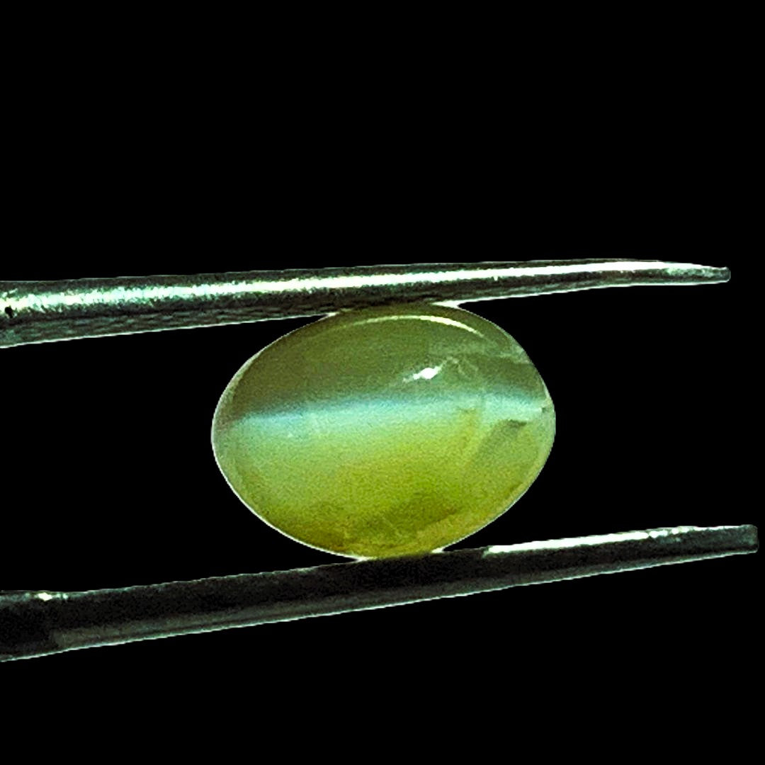 Premium quality Natural Cat’s Eye gemstone (Chrysoberyl) weighing 2.03 carats with dimensions 7.3 x 5.9 x 4.7 mm. Known for its sharp chatoyancy (cat’s eye effect), this stone is ideal for Vedic astrology remedies for Ketu. It offers protection from evil energies, enhances focus and confidence, and is perfect for those seeking balance and intuition.