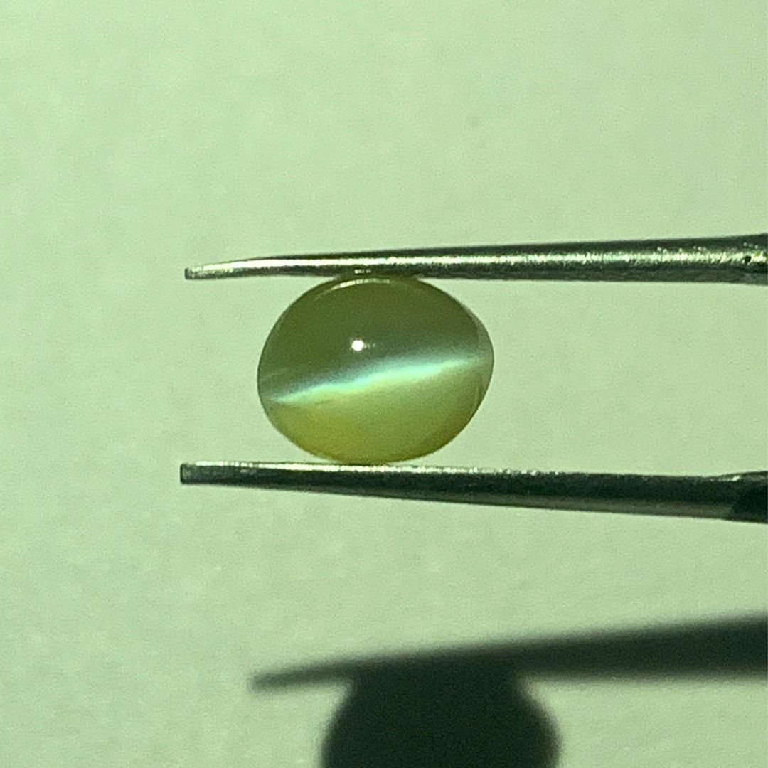 Natural Cat’s Eye gemstone (Chrysoberyl) weighing 2.52 carats with dimensions 8.3 x 6.2 x 4.8 mm. This stone is 100% natural, untreated, and known for its strong chatoyancy (cat's eye effect). Ideal for astrological use, especially for Ketu remedies in Vedic astrology. Brings protection from negative energies, enhances focus, and improves financial stability. Certified and sourced with care by Astro Gems.