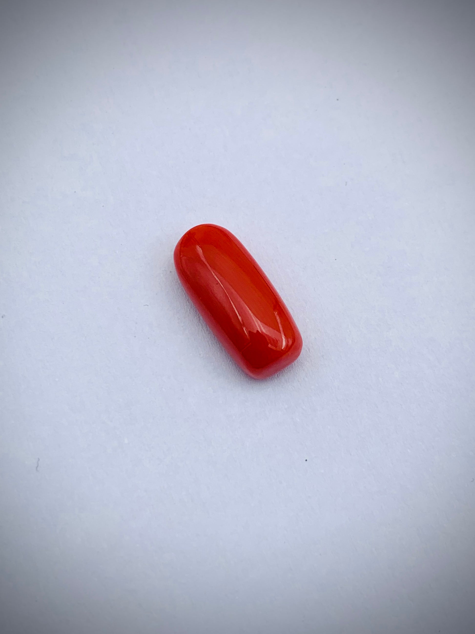 Embrace the natural power of this premium Coral gemstone, weighing 6.99 carats, beautifully shaped in a smooth oval cabochon cut. Sourced and offered by Astrogems India, this vibrant stone features precise dimensions of 16.1 x 7.2 x 6.8 mm and showcases the warm, energizing hue typical of natural coral.
