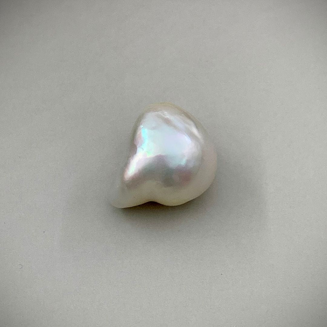 This Keshi Pearl measures 15.2 x 12.7 x 11 mm and showcases a lustrous nacre that results from its nucleus-free formation. Known for their purity and vibrant sheen, Keshi Pearls are cherished among gemstone collectors and spiritual practitioners alike.